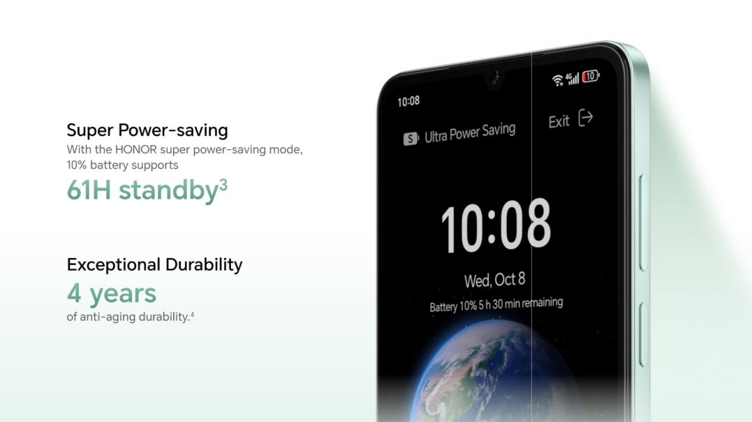 Battery Capacity 5130mAh (rated value), 5260 mAh (typical value) *This capacity is the nominal battery capacity. The actual battery capacity for each individual phone may be slightly above or below the nominal battery capacity. Type Lithium-ion polymer battery Wired Charging Supported 15W *The actual charging power may vary with different scenarios intelligently. Please refer to actual situations. Standard Charger HONOR 15W Switching Power Adaptor *Depend on market