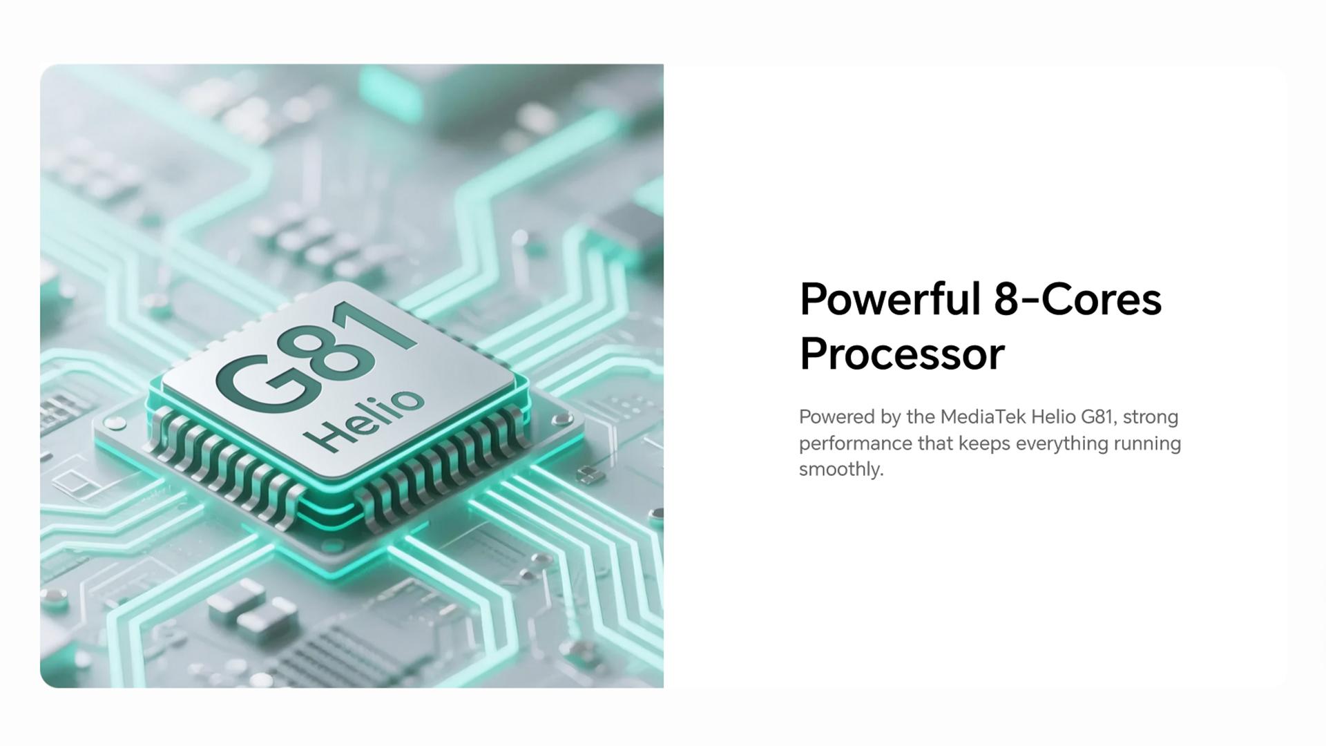 Processor CPU Model MediaTek Helio G81 CPU Type Octa-core CPU Dominant Frequency 2*A75 2.0Ghz + 6*A55 1.7Ghz *The actual frequency may adjust by application load intelligently. GPU ARM Mail G52 MC2