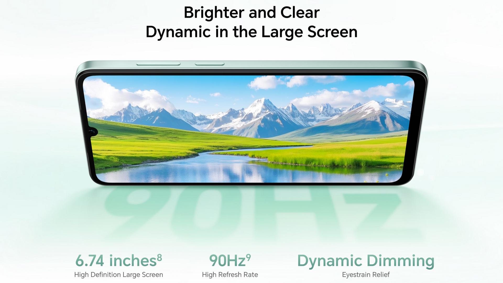 Display(Design) Size 6.74 inches *With a rounded corners design on the display, the diagonal length of the screen is 6.74 inches when measured according to the standard rectangle (the actual viewable area is slightly smaller). Aspect Ratio 20:9 Color 16.7 million colors Type TFTLCD Eye Comfort Technology Eye Comfort/Dynamic Dimming Resolution 720*1600