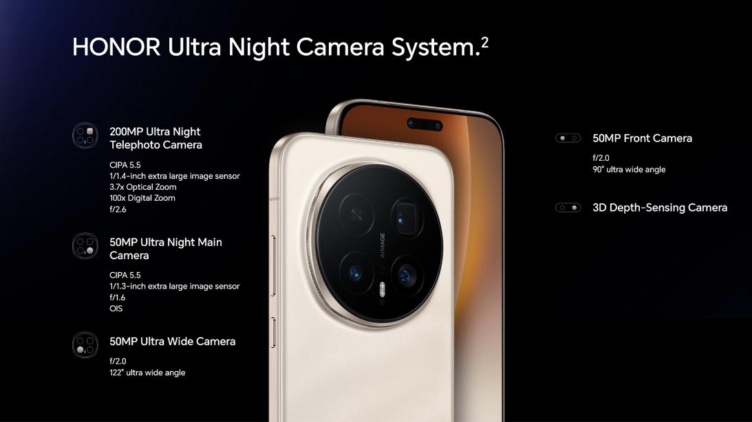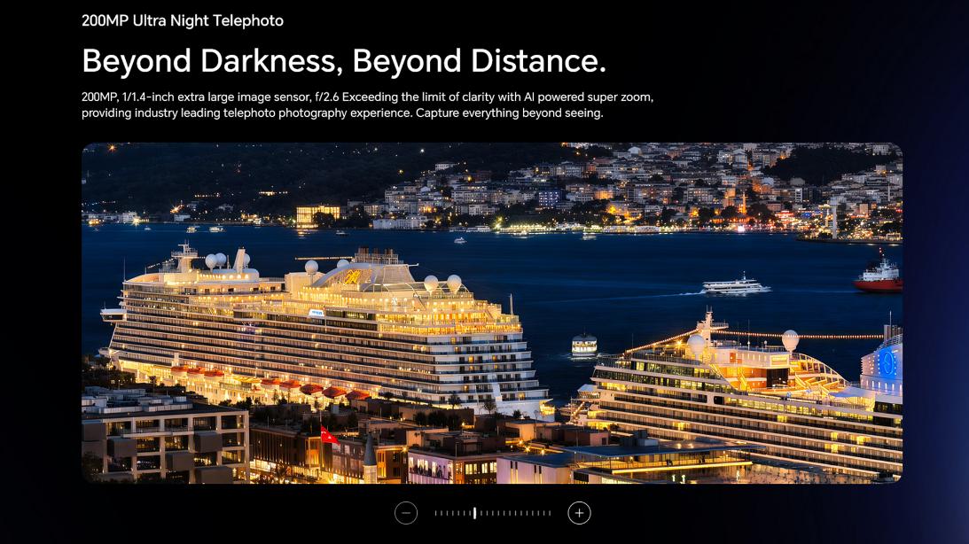 50 MP, f/1.6, 23mm (wide), 1/1.3", 1.2µm, multi-directional PDAF, OIS 200 MP, f/2.6, 85mm (periscope telephoto), 1/1.4", 0.56µm, multi-directional PDAF, OIS, 3.7x optical zoom 50 MP, f/2.0, 12mm, 122˚ (ultrawide), 1/2.88", 0.61µm, dual pixel PDAF