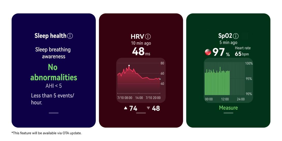 9-axis IMU sensor (Accelerometer sensor, Gyroscope sensor, Magnetometer sensor) Optical heart rate sensor Ambient light sensor